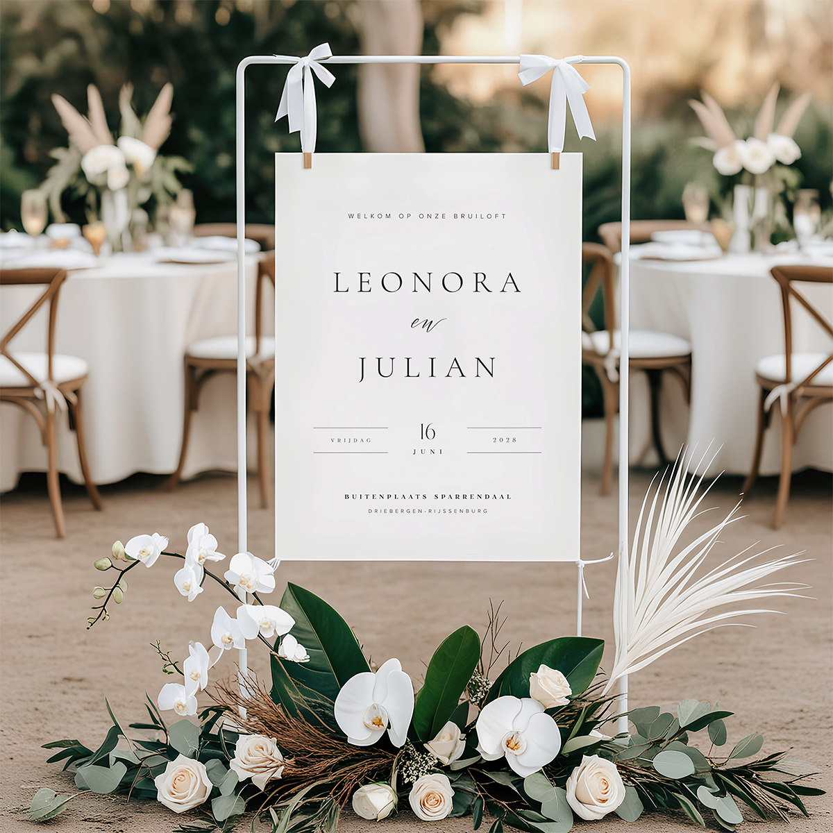 Verwelkom jullie gasten met een stijlvol trouwbord, passend bij stationery Le Vieux.